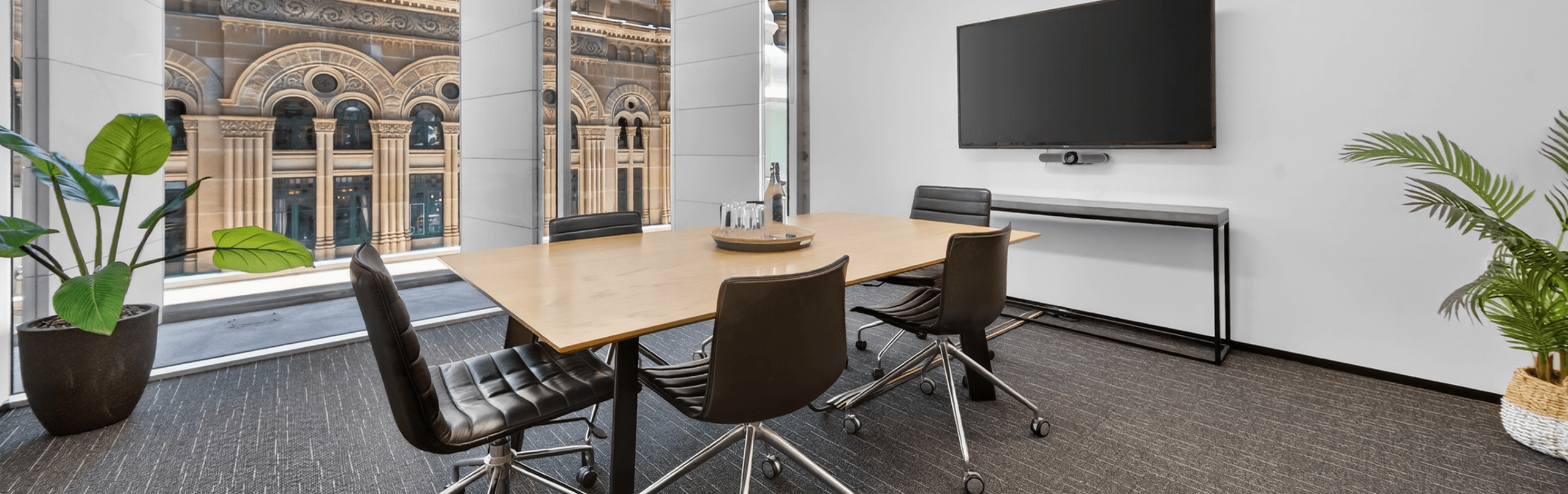 Our modern meeting room facilities provide the perfect professional setting for your next meeting, presentation, or client catch-up. Choose from two well-appointed spaces designed to suit different needs: our premium Boardroom seats up to eight people and features stunning external views overlooking the iconic QVB, along with up-to-date AV equipment and whiteboards, creating an impressive environment for high-level discussions. For smaller meetings, our internal Meeting Room comfortably seats six and is equipped with modern AV technology and a whiteboard, offering a quiet, focused space to collaborate. Both rooms are available for flexible hire and deliver a polished, professional experience in a central location.